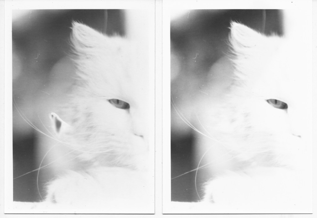 Playing with its combinations and a superposition of exposures from a single negative image, I created these cat “monsters” that represent the distorted image that the allergy has created of them in my brain.